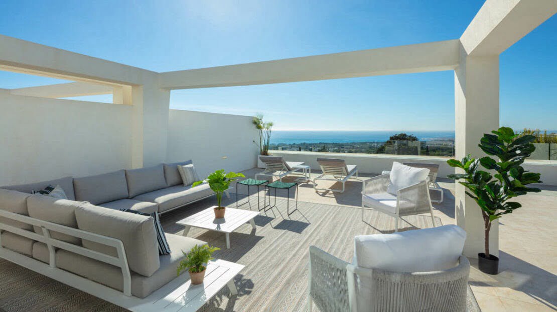 A beautifully presented duplex penthouse in the prestigious residential community of Sierra Blanca, within a short distance to the Golden Mile, Puente Romano and the beach. This is a modern luxury apartment located in the eco-friendly community of Reserva de Sierra Blanca, known for extra large duplex apartments, high level of security, manicured communal areas and panoramic sea views.