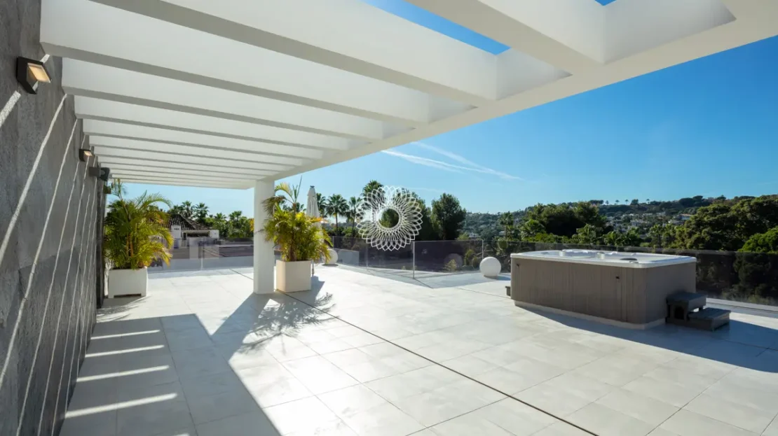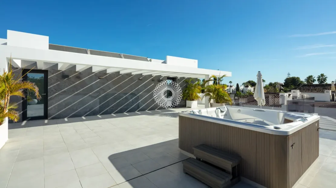 A striking modern masterpiece for sale in the heart of Nueva Andalucia, boasting of a privileged sought-out location and top class on-site facilities. Beautifully renovated, this fantastic home comes complete with everything for the modern-day family, contemporary design and style, set in an enviable location. The area offers a wealth of walking distance amenities, from restaurants and bars, to sports facilities, high-end health clinics, international schools and specialty shops.