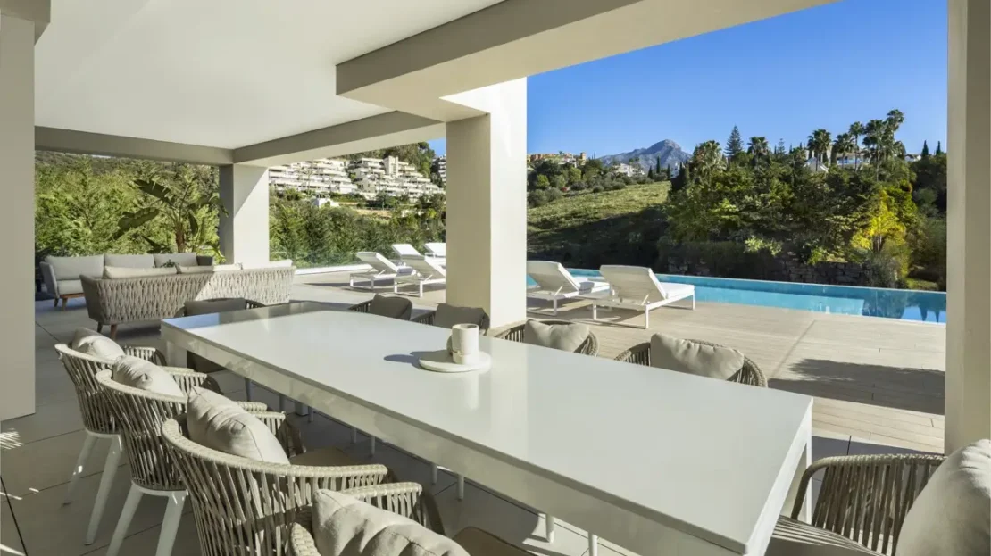 This marvel of modern architecture is ideally situated in the coveted Nueva Andalucia area, featuring an eastern orientation that ensures abundant sunlight throughout the morning and day. It is complemented by breathtaking views of the surrounding area and the majestic La Concha mountain.