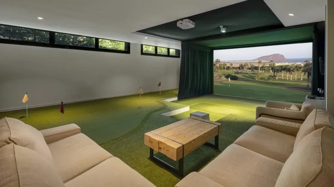 Additional amenities within the home include an outdoor gym, golf simulator room, a home cinema, and an entertainment room, completing the epitome of luxury living.