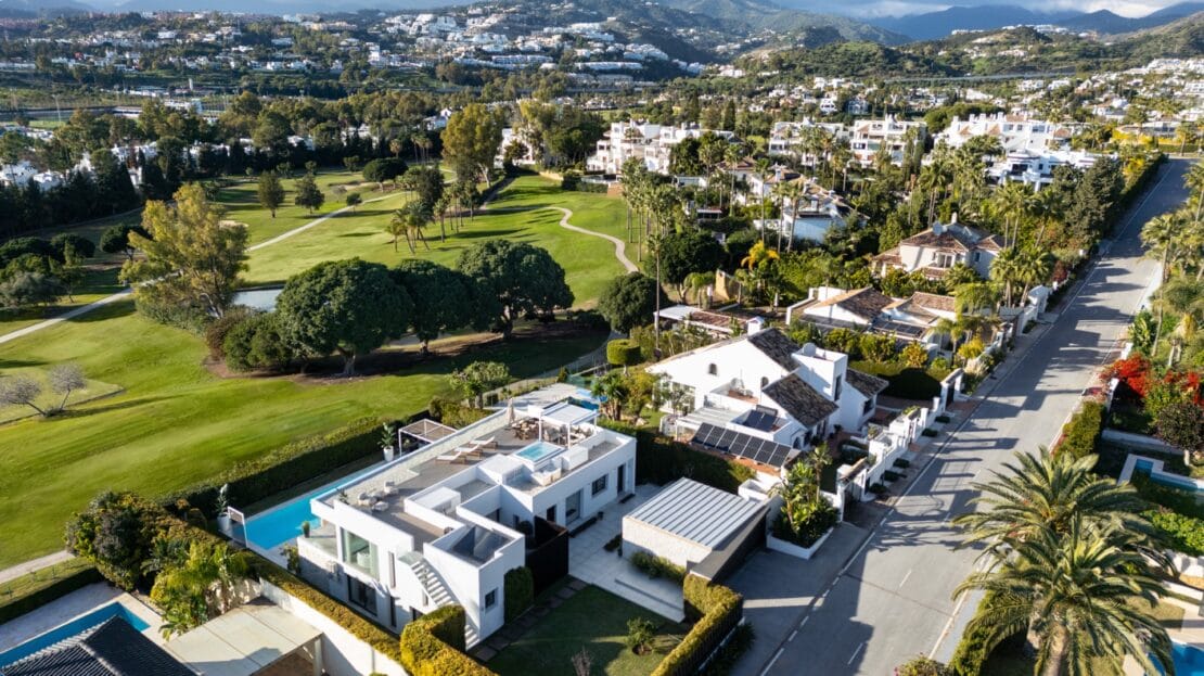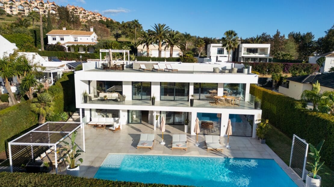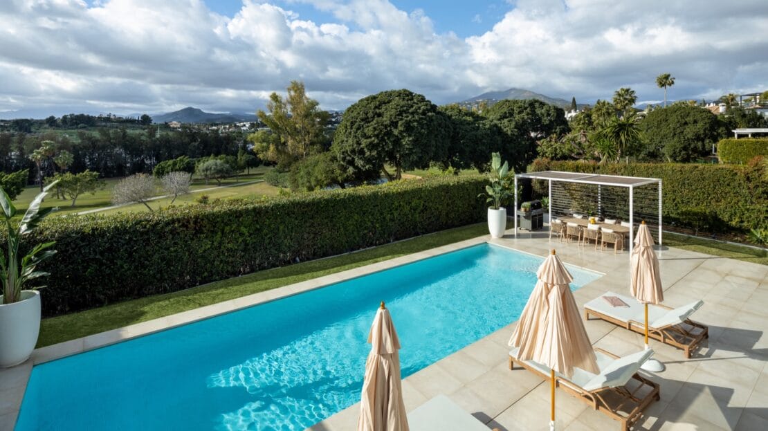 Introducing Celestial Vista Villa, an outstanding frontline golf property located in the heart of Nueva Andalucía, Marbella. Built in 2017, this modern masterpiece effortlessly fuses contemporary design with luxurious comfort, delivering an unparalleled living experience. The villa boasts 6 spacious bedrooms and 4 elegantly appointed bathrooms across 342 m² of refined living space, all set on a generous 1,090 m² plot featuring a 167 m² terrace with an east-facing orientation that fills the home with natural light.