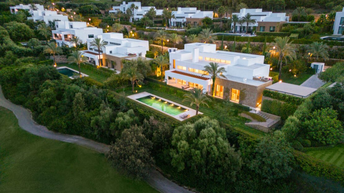 Nestled within the prestigious Finca Cortesin Resort, this magnificent villa showcases captivating architecture that offers a contemporary twist on golfside living. As you arrive, a private driveway welcomes you, providing convenient covered parking spaces for two cars.
