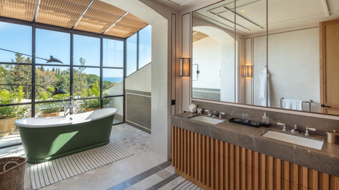 With an impressive total of 9 sizeable bedrooms, spread evenly throughout the main estate, each one has been carefully designed, making the most of its capacity. The master suite is truly astounding, designed with natural wooden touches throughout, personalised cabinetry and unique design elements, overlooking the magnificent sea views and harmoniously flowing onto the private terrace. With an integrated spacious and elegant master bathroom, its centre piece being a beautiful green copper clawfoot tub with an open glass ceiling, with plentiful nature views and direct access to an outdoor Jacuzzi.