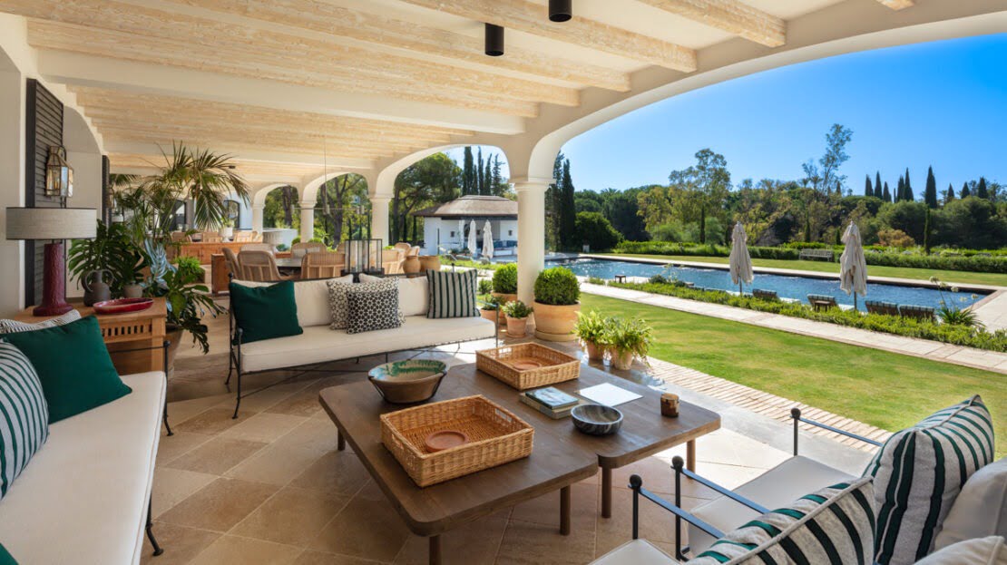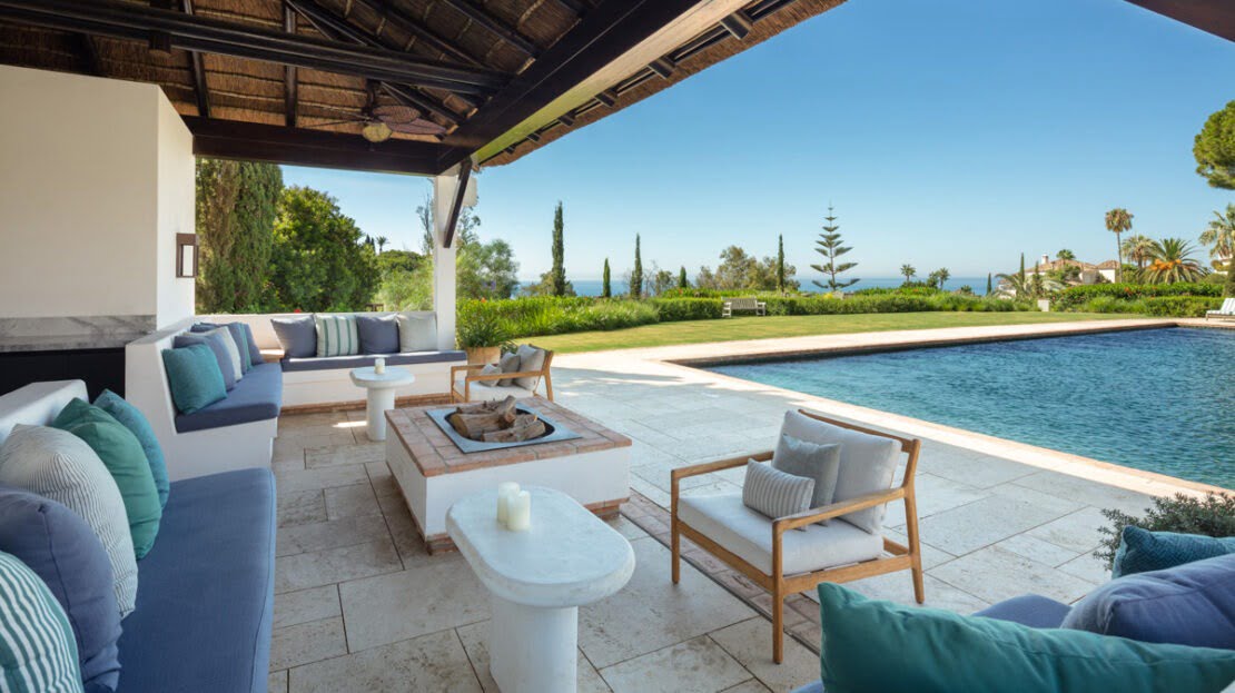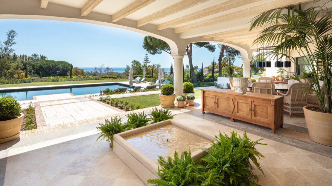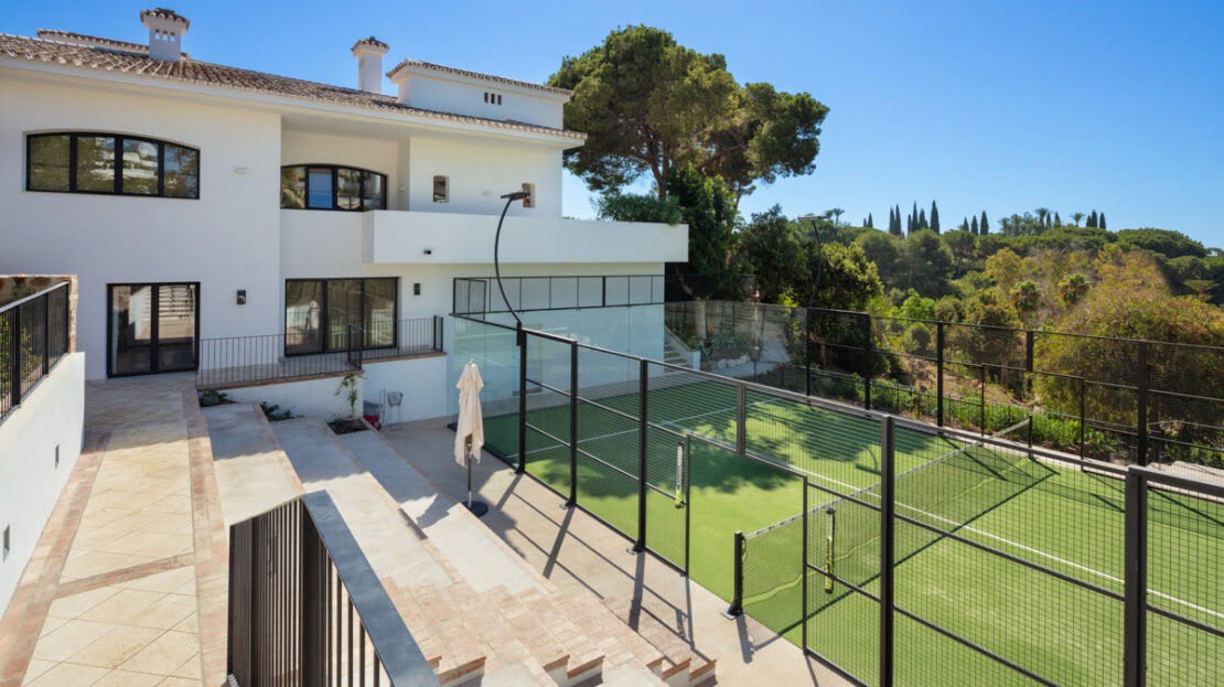True to its Spanish heritage, you can bask in its Andalusian architecture with spacious covered and uncovered patios, wooden beam ceiling details, a centre water feature, lush vegetation and romantic manicured gardens, a large swimming pool facing the blue horizon and your own paddle court.