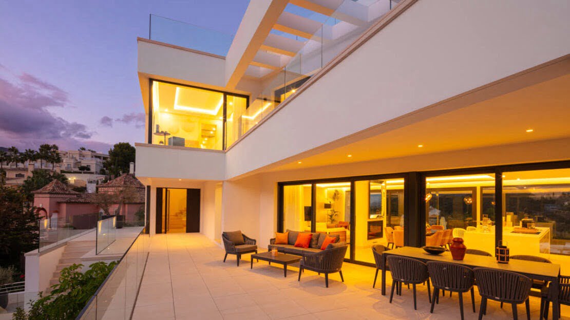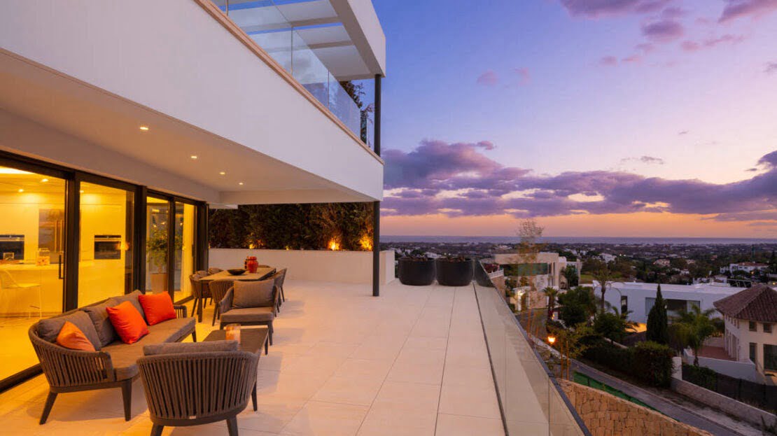 A contemporary architectural masterpiece in the exclusive neighbourhood of La Quinta, with astonishing panoramic views towards the sea, mountains and city.