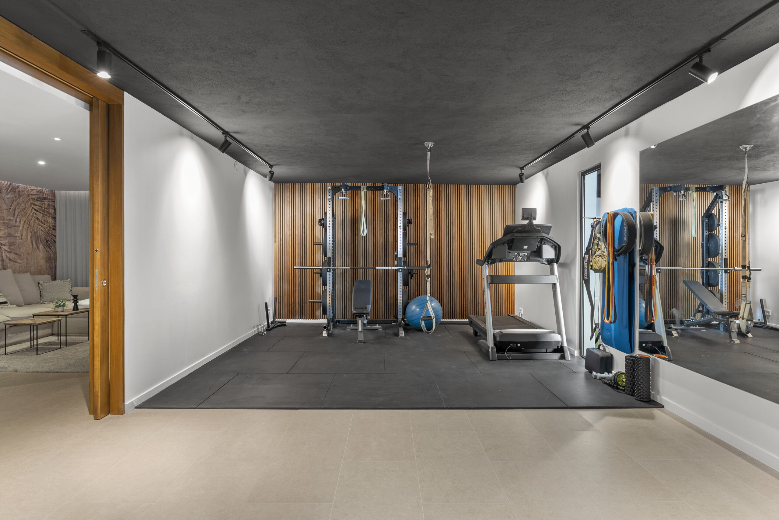 The plot measures 876 square metres with a 115-square-metre terrace and private garage. The orientation and the three-level design give each floor its own character — living areas that connect to the garden, private quarters that stay private.