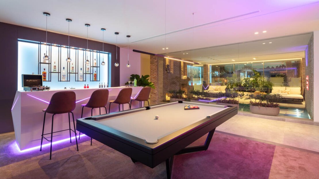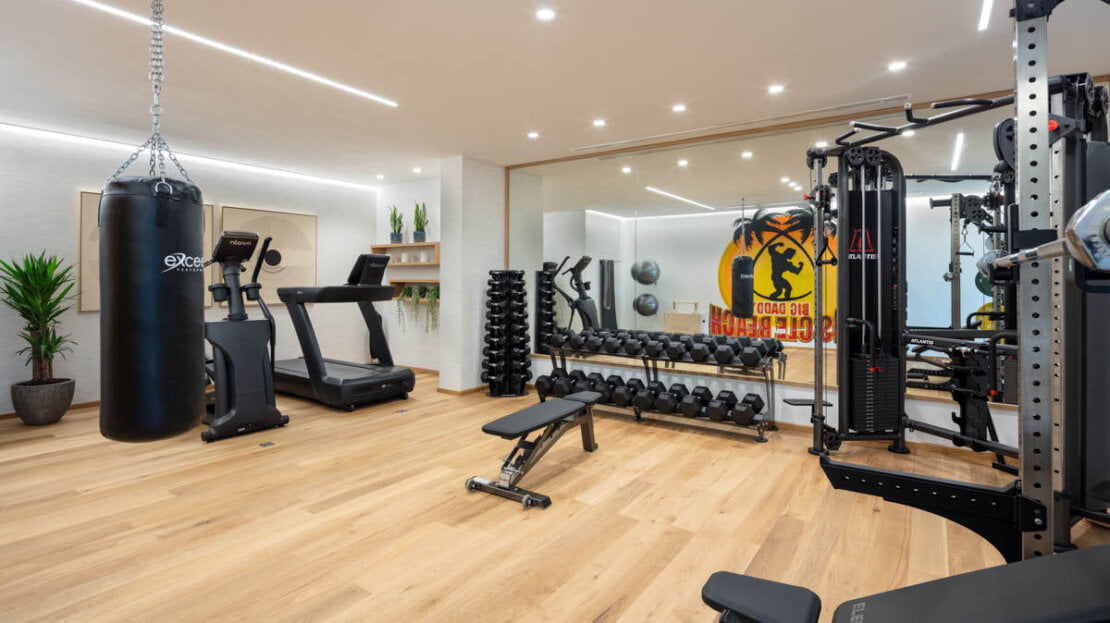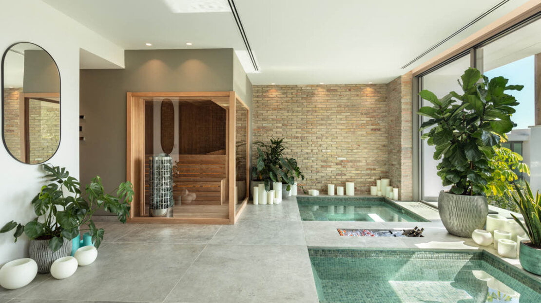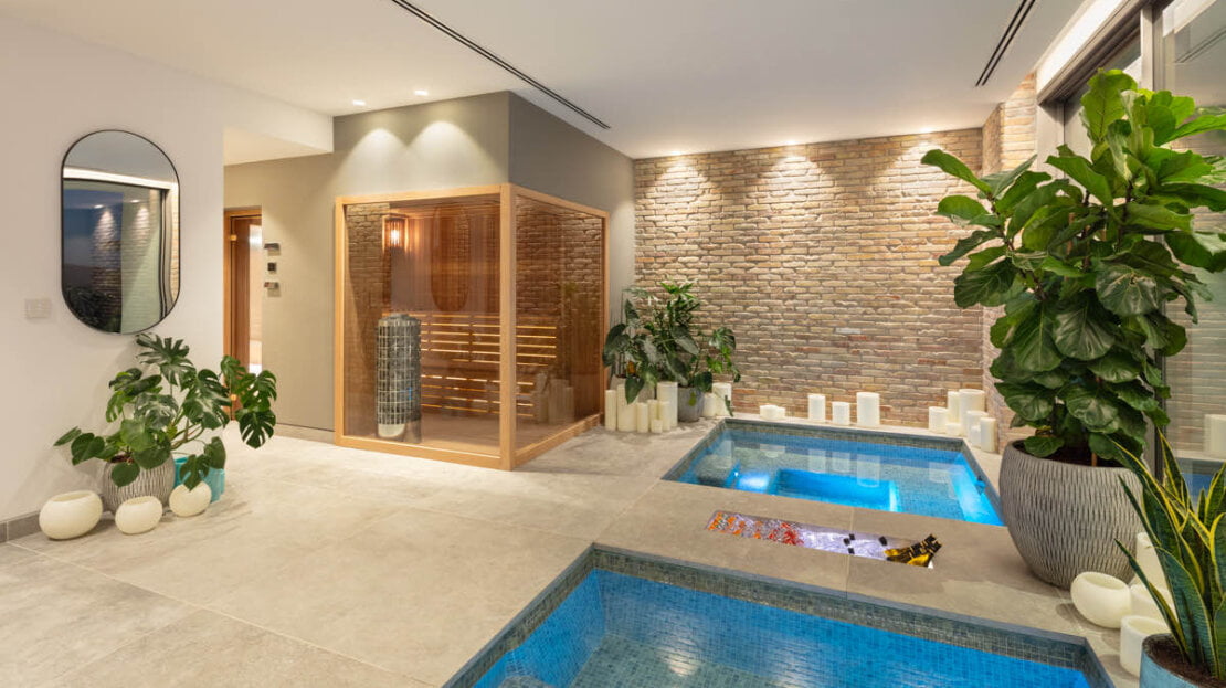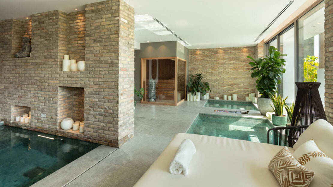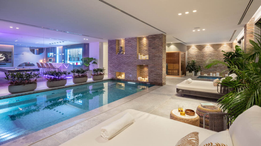 An outdoor kitchen and dining areas further enhance the experience, making it an ideal spot for hosting gatherings and enjoying the Mediterranean climate in style. A sumptuous spa invites you to unwind with its indoor pool, steam room, sauna and massage rooms, offering a private sanctuary for rejuvenation and well-being. Additionally, a fully equipped indoor gym and entertainment room cater to your fitness and leisure needs, ensuring you can stay active and entertained without leaving the comfort of your home.