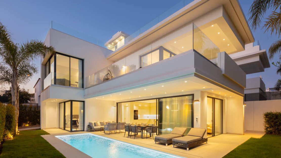 New modern detached villas located in one of the elite areas in Marbella – Beach Side Golden Mile, in a closed urbanization Rio Verde, just 100 meters from the beach.