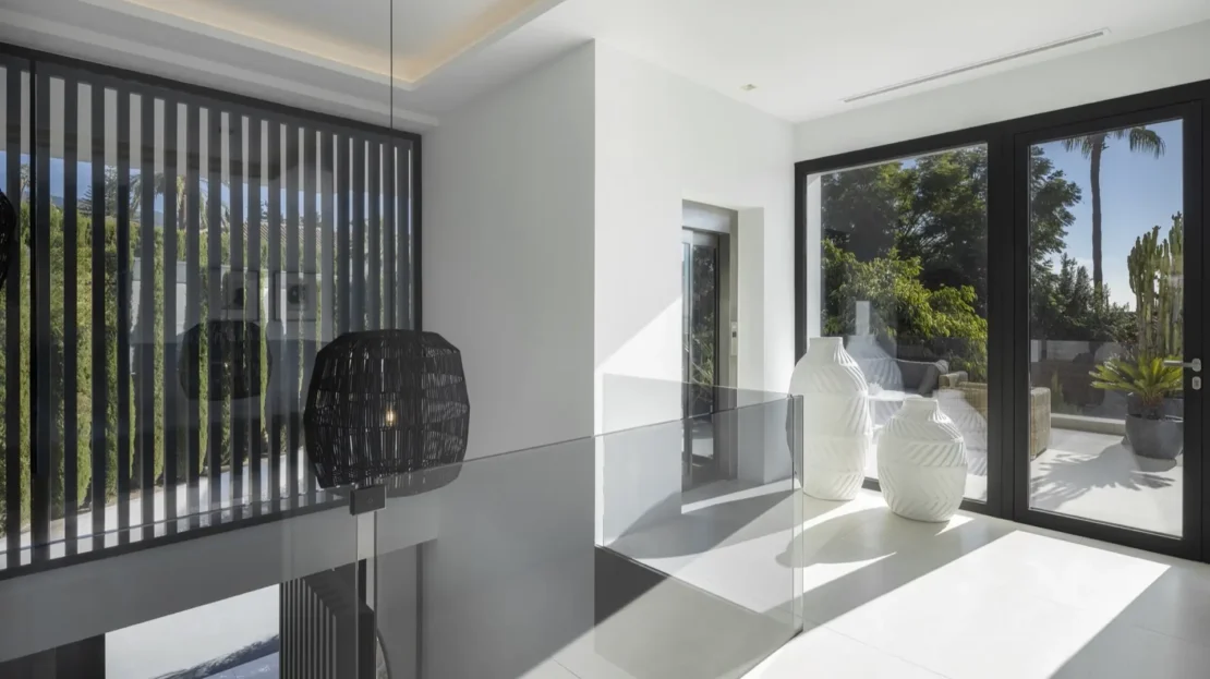 This stunning modern luxury villa is located in Nagueles, a premier area on the Marbella Golden Mile, offering easy access to the center of Marbella and just a 10-minute drive from Puerto Banus. Constructed to the highest specifications, this property showcases meticulous attention to detail using top-quality materials and installations throughout.