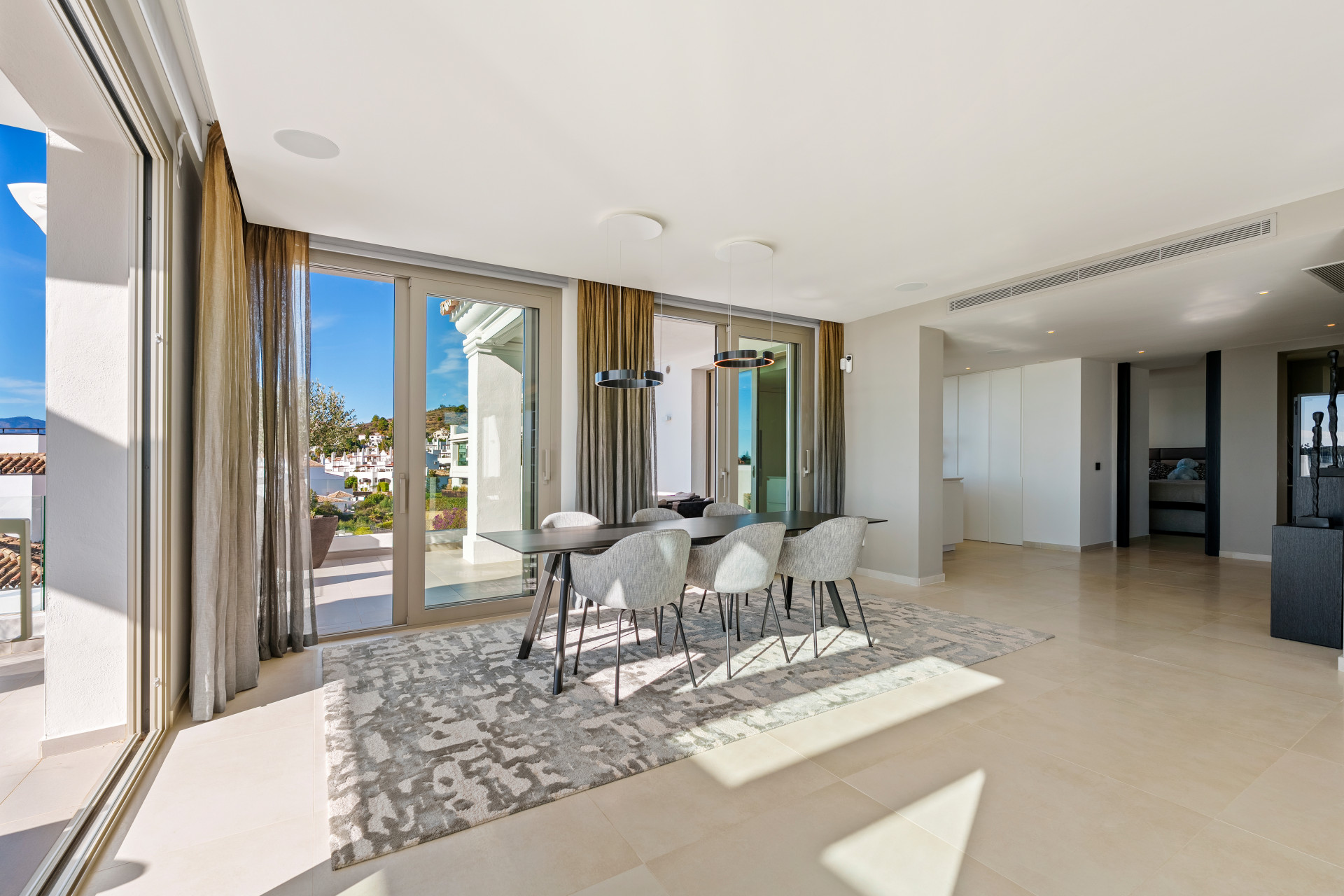 Nido Celeste — Elevado sobre Nueva Andalucía, este espectacular ático dúplex en la comunidad cerrada de 9 Lions regala una perspectiva única sobre los campos de golf de Aloha y las montañas que enmarcan la Marbella. Una residencia de tres dormitorios que combina intimidad, diseño y el mejor estilo de vida de Marbella.