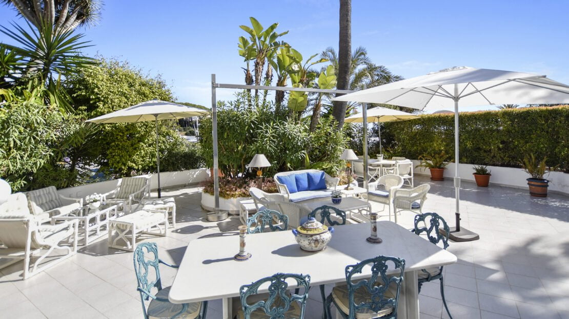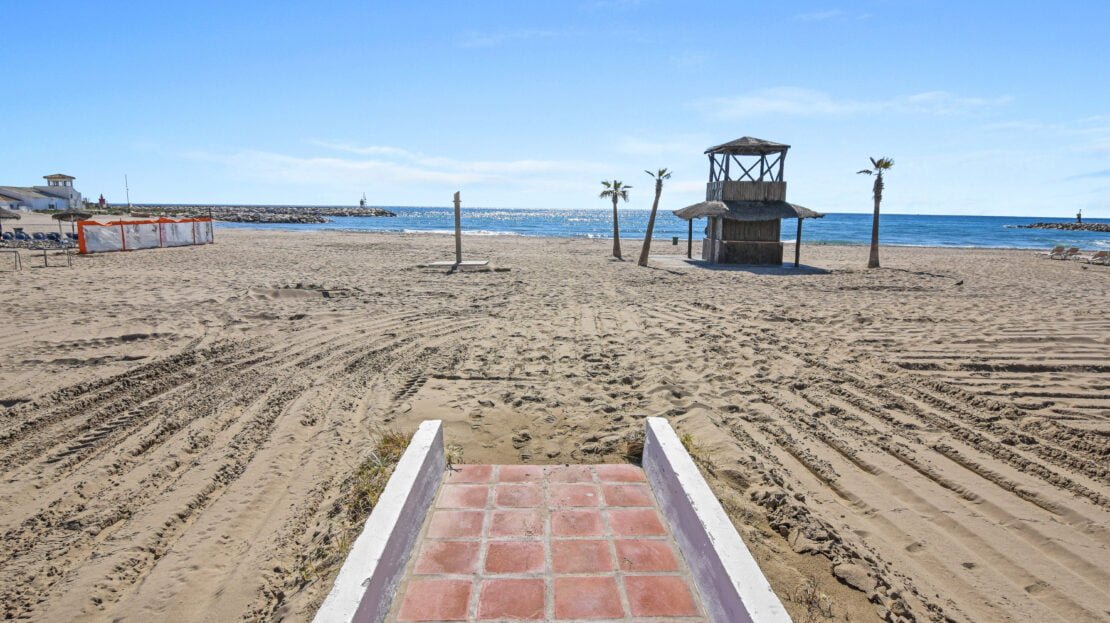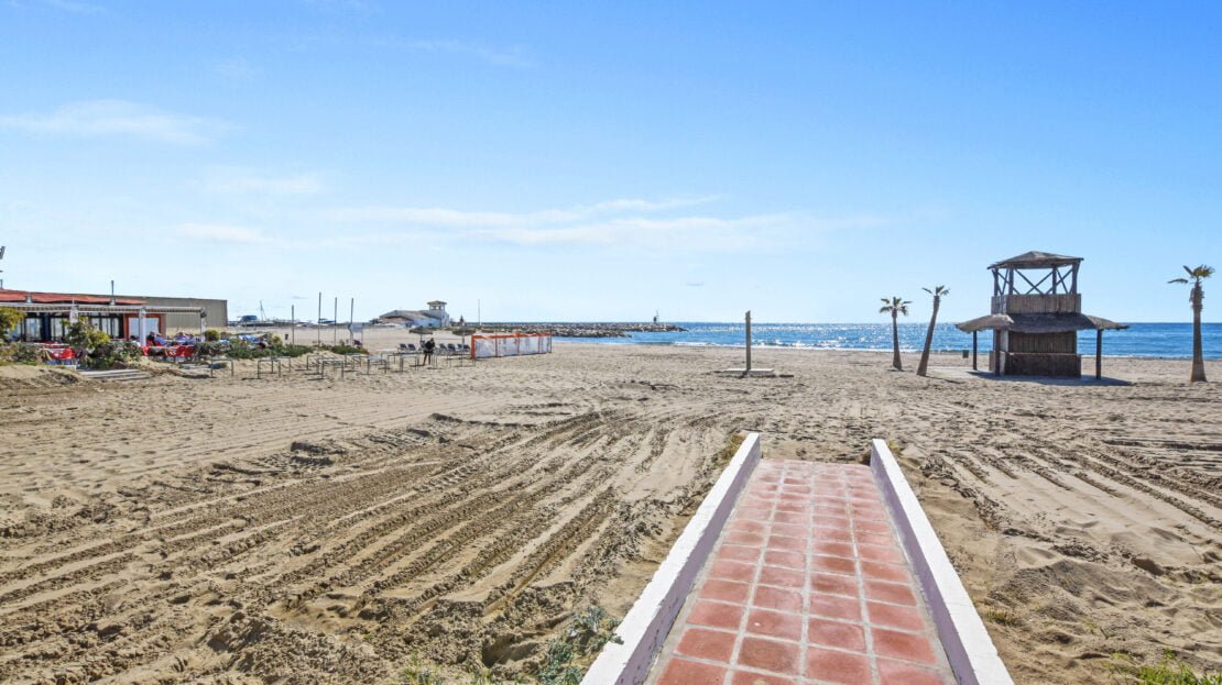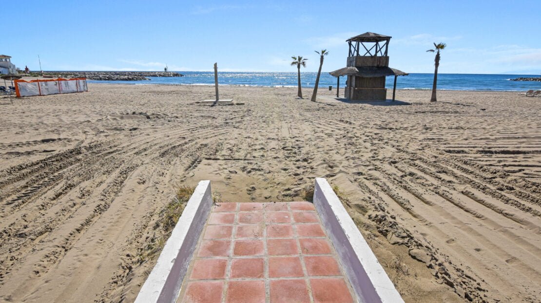 The 213 m² terraces provide ample space to relax and enjoy panoramic sea views. The property has direct access to the well-maintained communal gardens and an impressive pool area, which connects directly to the wide sandy beaches of Cabopino. The direct access to the beach and Cabopino Port is a standout feature, making this residence a true coastal paradise.