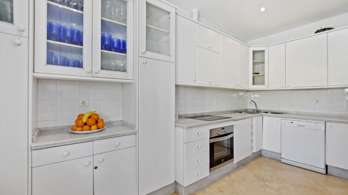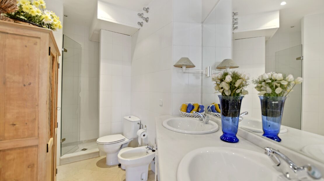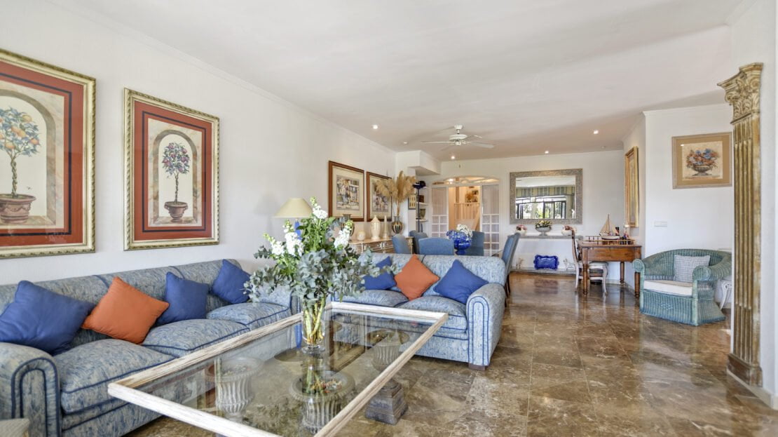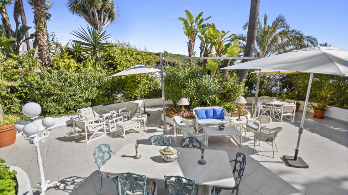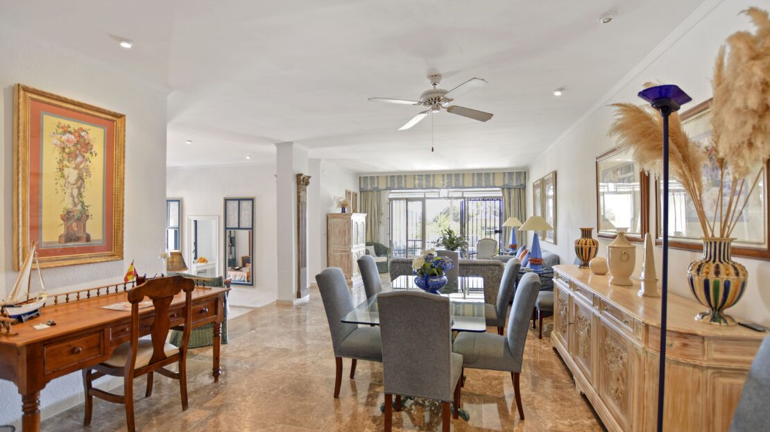The 213 m² terraces provide ample space to relax and enjoy panoramic sea views. The property has direct access to the well-maintained communal gardens and an impressive pool area, which connects directly to the wide sandy beaches of Cabopino. The direct access to the beach and Cabopino Port is a standout feature, making this residence a true coastal paradise.