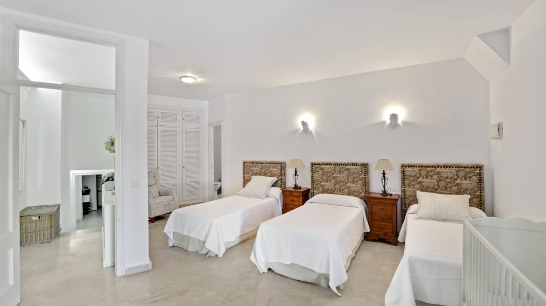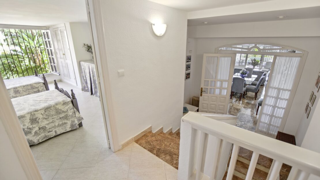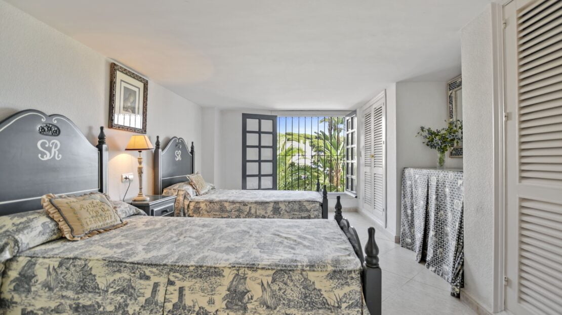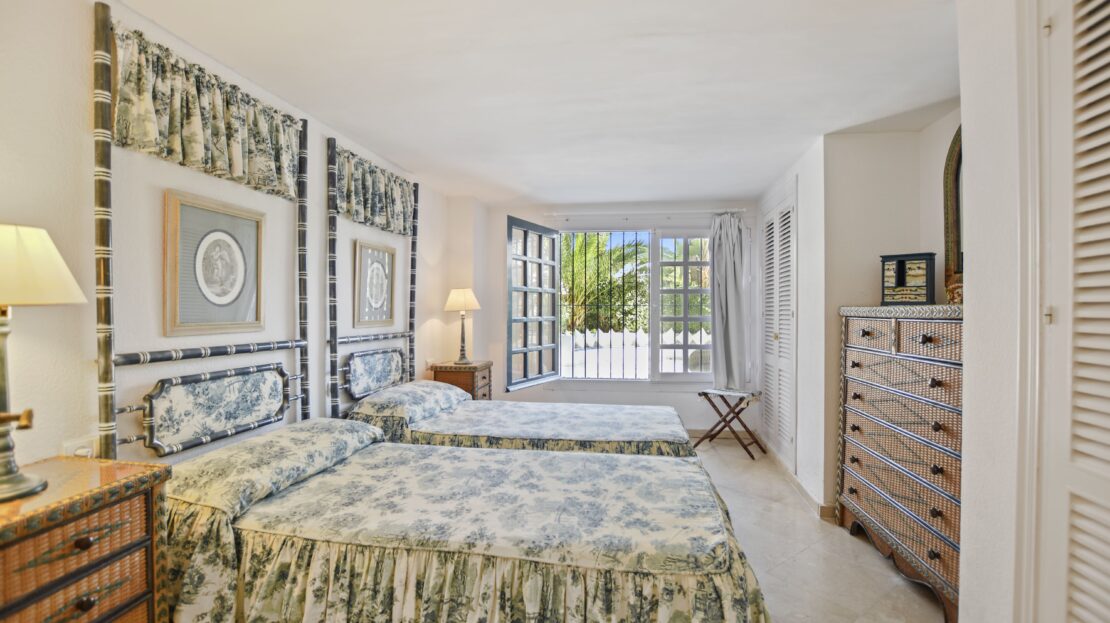 The lower or garden level houses two additional bedrooms, both with direct access to the terrace and the communal garden. These bedrooms are ideal for guests or as additional family space.