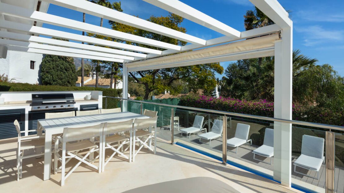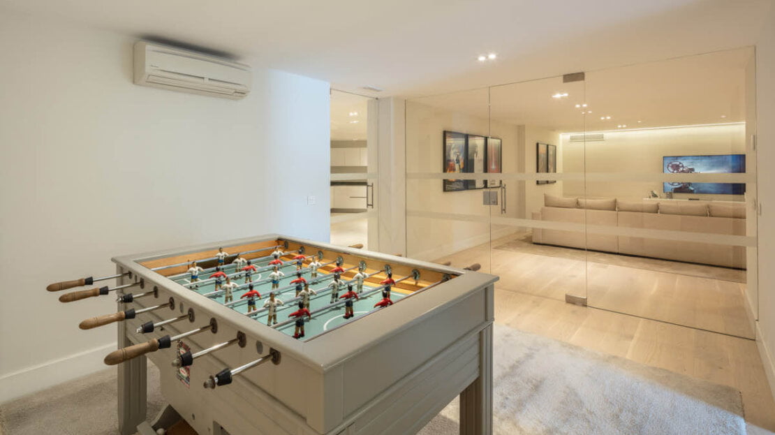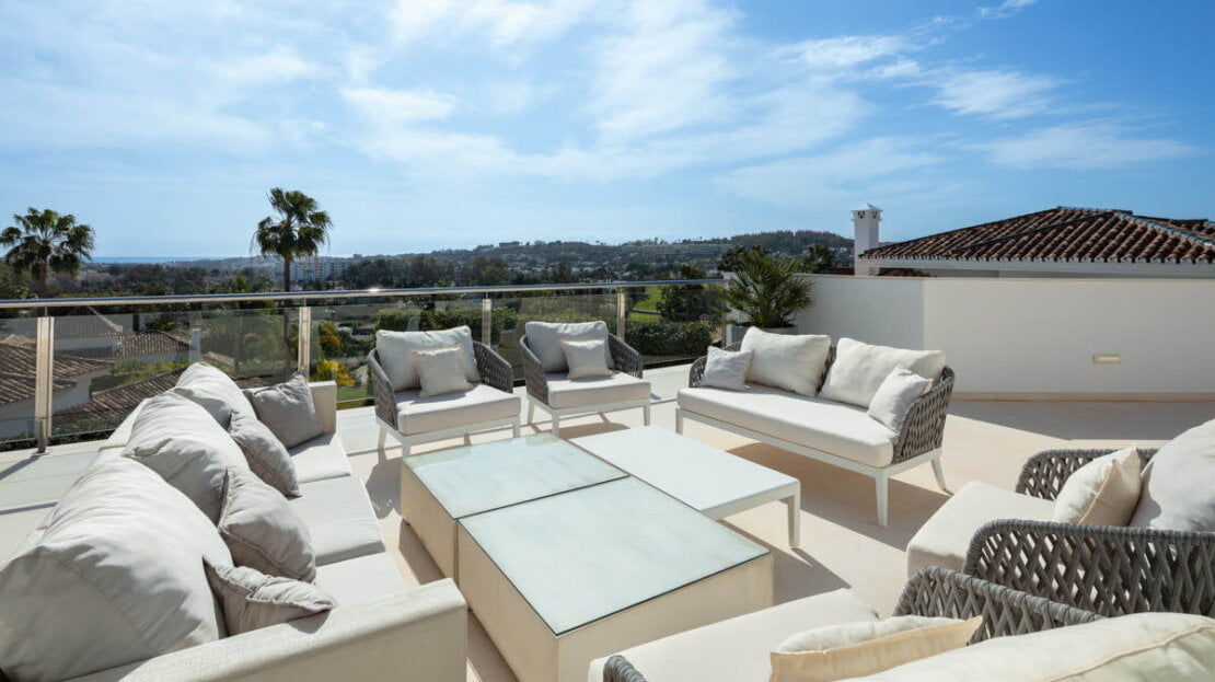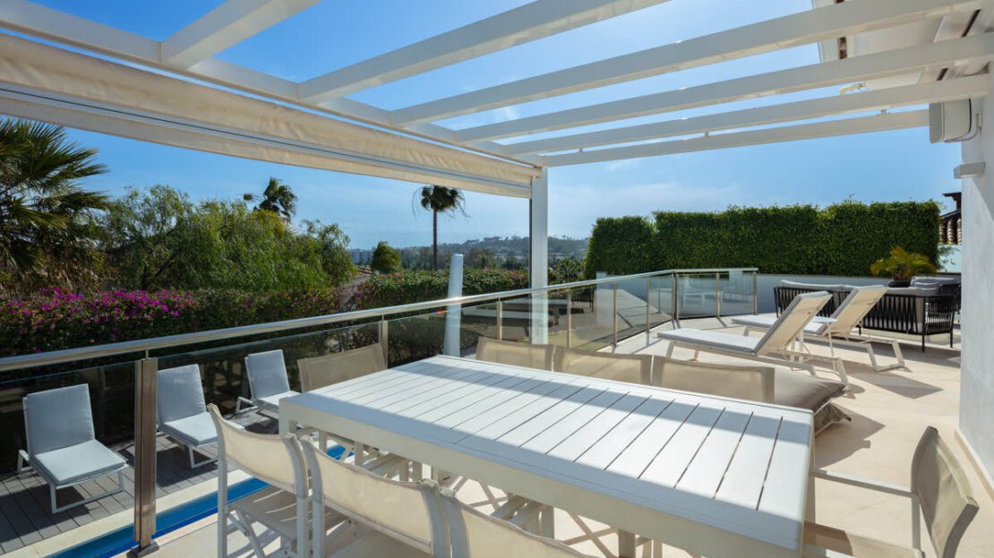 90m2 solarium terrace enjoys beautiful views of la Concha mountain in the east, over the golf course and Puerto Banus towards the south and evening sun on the west side. The property features plenty of recreational spaces: basement with a TV room, gym, sauna and games area, as well as outdoor facilities: salt water pool with access from the living/dining room, outdoor BBQ and dining area, various chill-out areas.