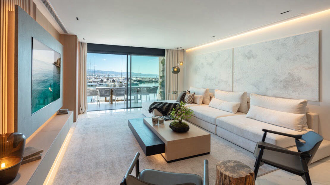 A sleek contemporary apartment located within the famous Puerto Banus Marina, showcasing jetliner panoramic views to the Mediterranean Sea and harbour. Experience luxurious coastal living in Puerto Banus, with endless designer stores, avant-garde restaurants and luxury leisure activities to enjoy under the spectacular Marbella climate.
