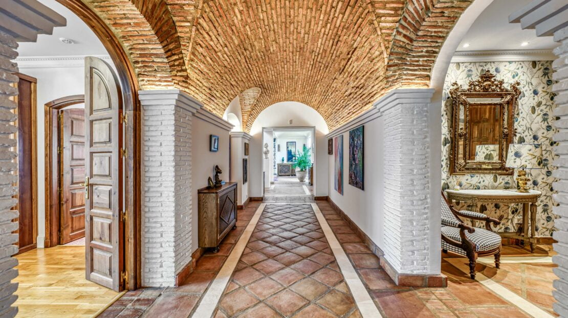 Elegant hallway with vaulted ceilings