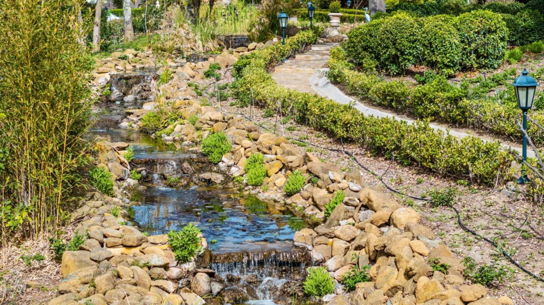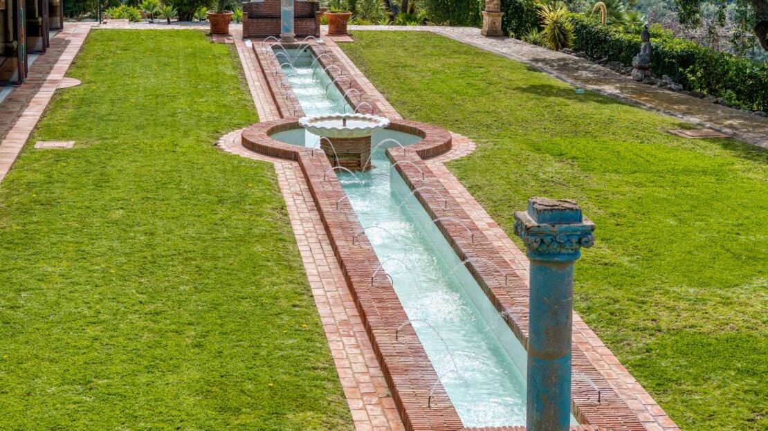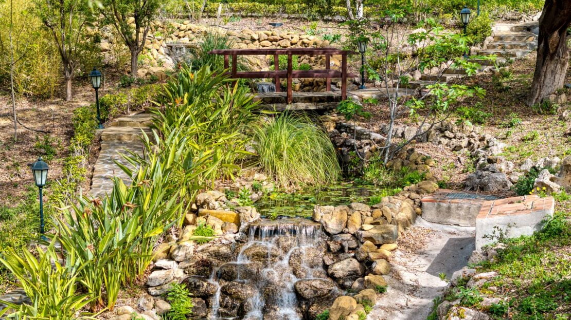 The villa is surrounded by a meticulously maintained garden featuring fruit trees, mature plants, serene ponds, graceful fountains, and sculptures. Additionally, a charming small house offers panoramic 360-degree views, perfect for painting or pursuing hobbies.
