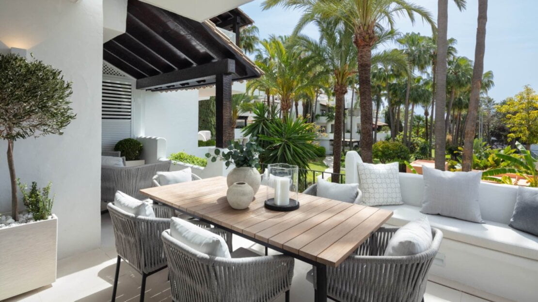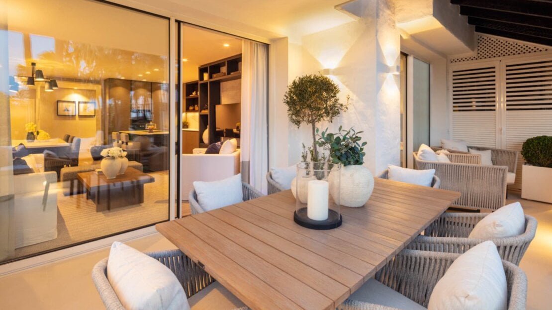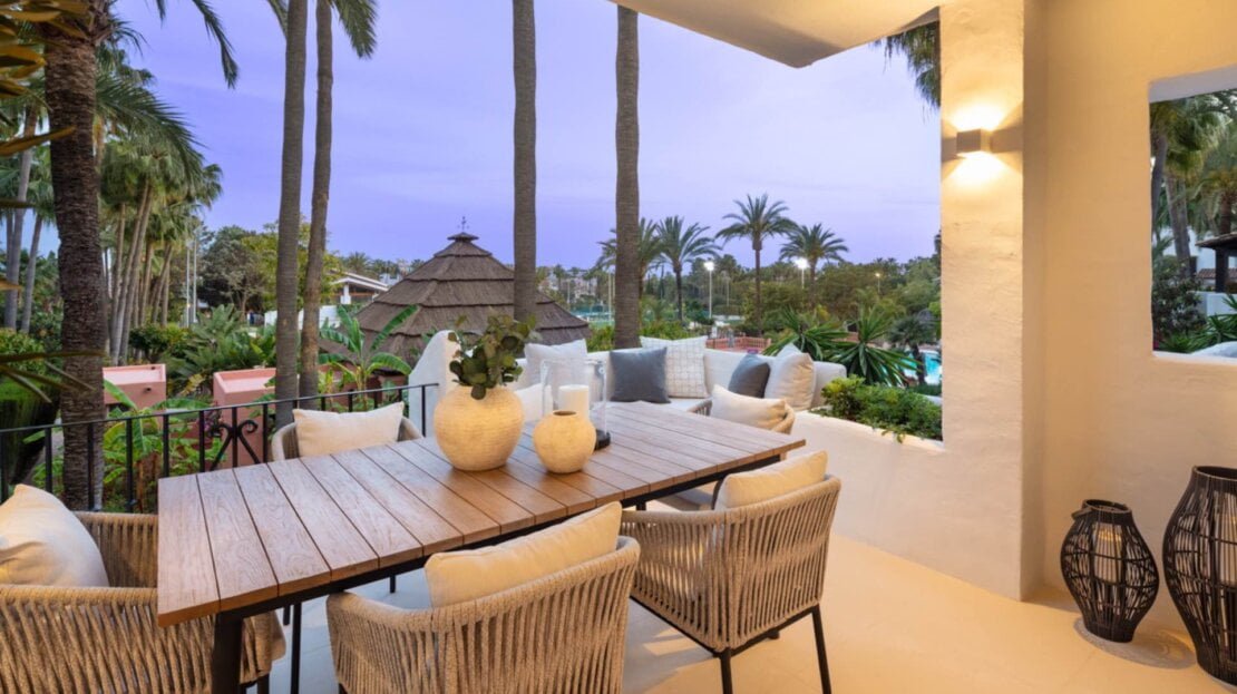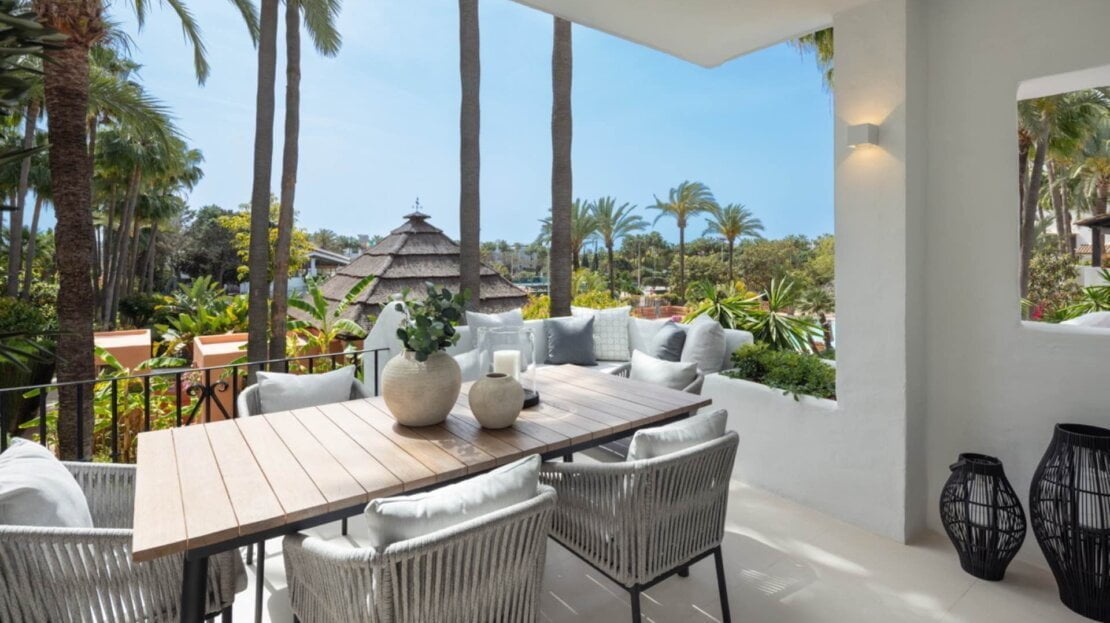 Stunning first-floor apartment that has undergone a beautiful renovation and is situated in the tranquil Andalusian Garden of the prestigious Marina Puente Romano on Marbella’s Golden Mile.