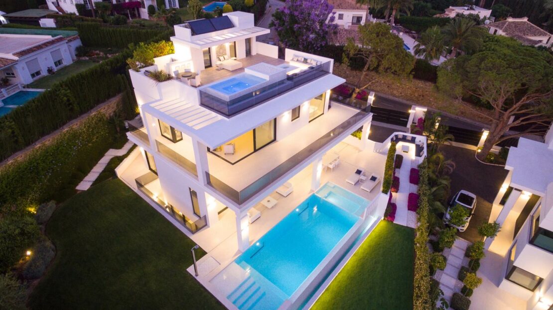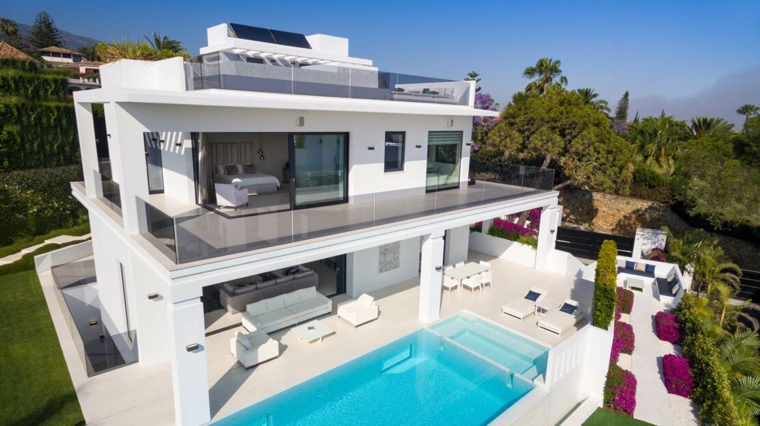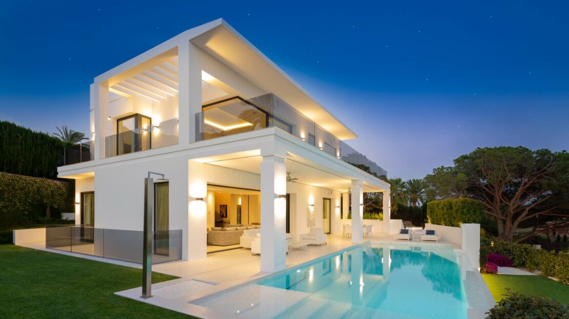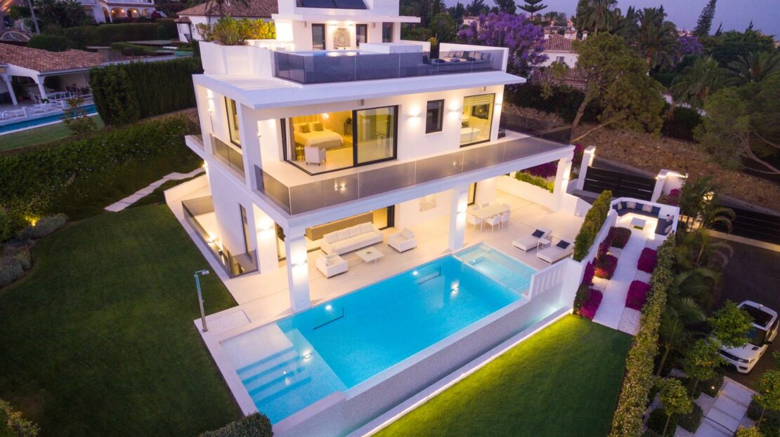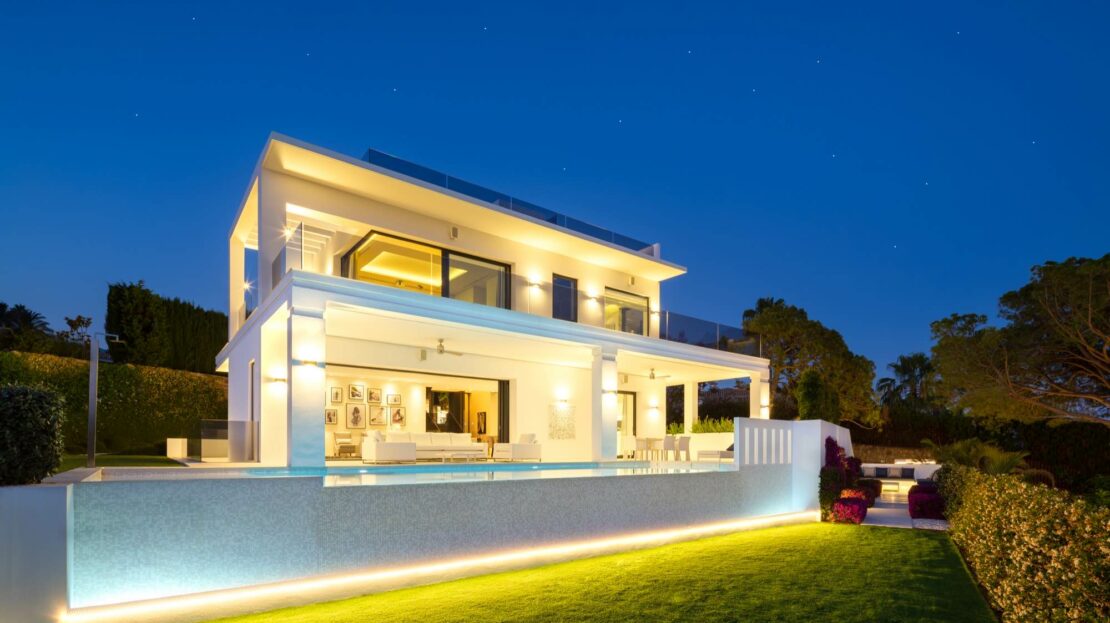 Stunning modern luxury villa in Nagueles, one of the top areas of Marbella Golden Mile, offering easy access to Marbella centre, 10 minutes drive from Puerto Banus. The property is built to highest specifications with great attention to detail and using top quality materials and installations.