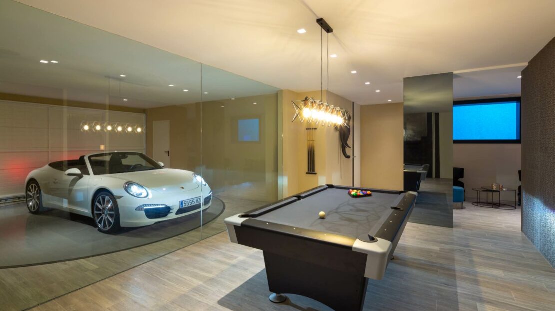 The villa is distributed over 3 levels including basement, plus a spacious solarium roof terrace. Basement level includes private garage with turntable mechanism, great entertainment area with TV/cinema room, wine cellar, lounge; nice size staff / guest bedroom with en-suite bathroom and also a laundry room, guest WC and technical room.