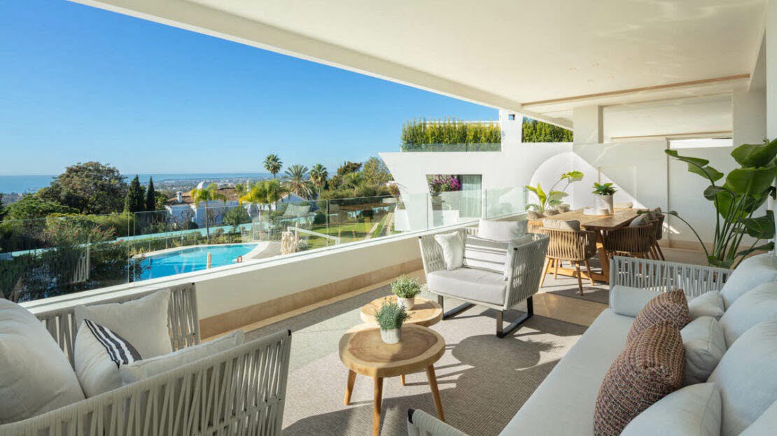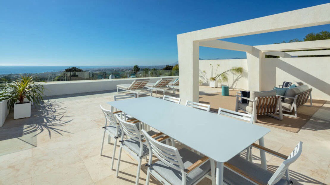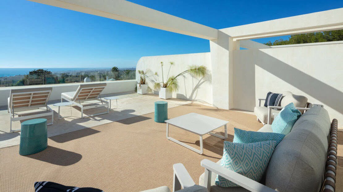 A stunning penthouse in the prestigious residential community of Sierra Blanca, within a short distance to the Golden Mile, Puente Romano and the beach. This is a modern luxury apartment located in the eco-friendly community of Reserva de Sierra Blanca, known for extra large duplex apartments, high level of security, manicured communal areas and panoramic sea views.
