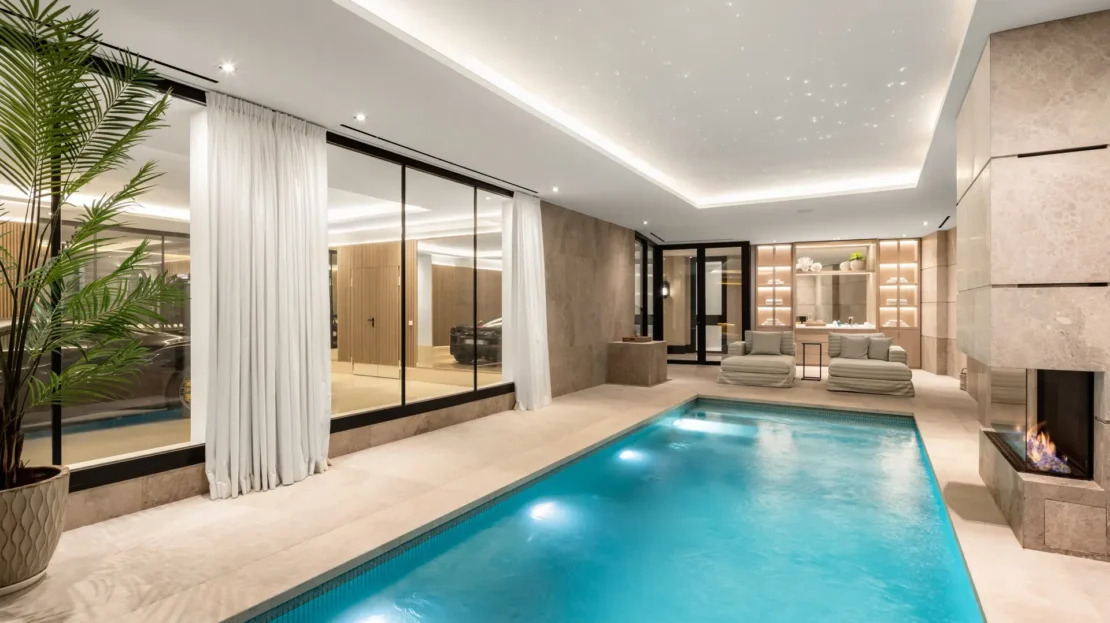 With over 1,000 square meters of built area, set on a 3,000 square meter plot, the property features amenities unmatched in Marbella. The new owners will enjoy an indoor pool complemented by both steam and infrared saunas, a jacuzzi, cold pod, gym, bodega, screening room, game room, massage room, relaxation room, and a glam-room with a hairdresser and make-up station. The main level includes 6 bedrooms and 7 bathrooms, a large gourmet kitchen, dining room, TV room, and a spacious living room that overlooks the immaculate garden.