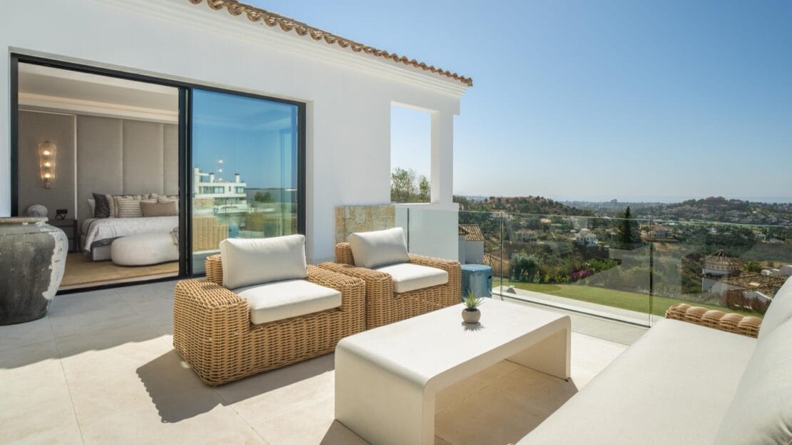 Introducing Villa Celeste, a stunning new-build villa in El Herrojo, Benahavis that redefines modern luxury with a playful twist on traditional Mediterranean and French Provencal aesthetics. Designed by the esteemed GC Studio, this architectural masterpiece seamlessly marries natural materials with traditional roof tiles on a charming gable rooftop, creating a residence of distinctive sophistication.