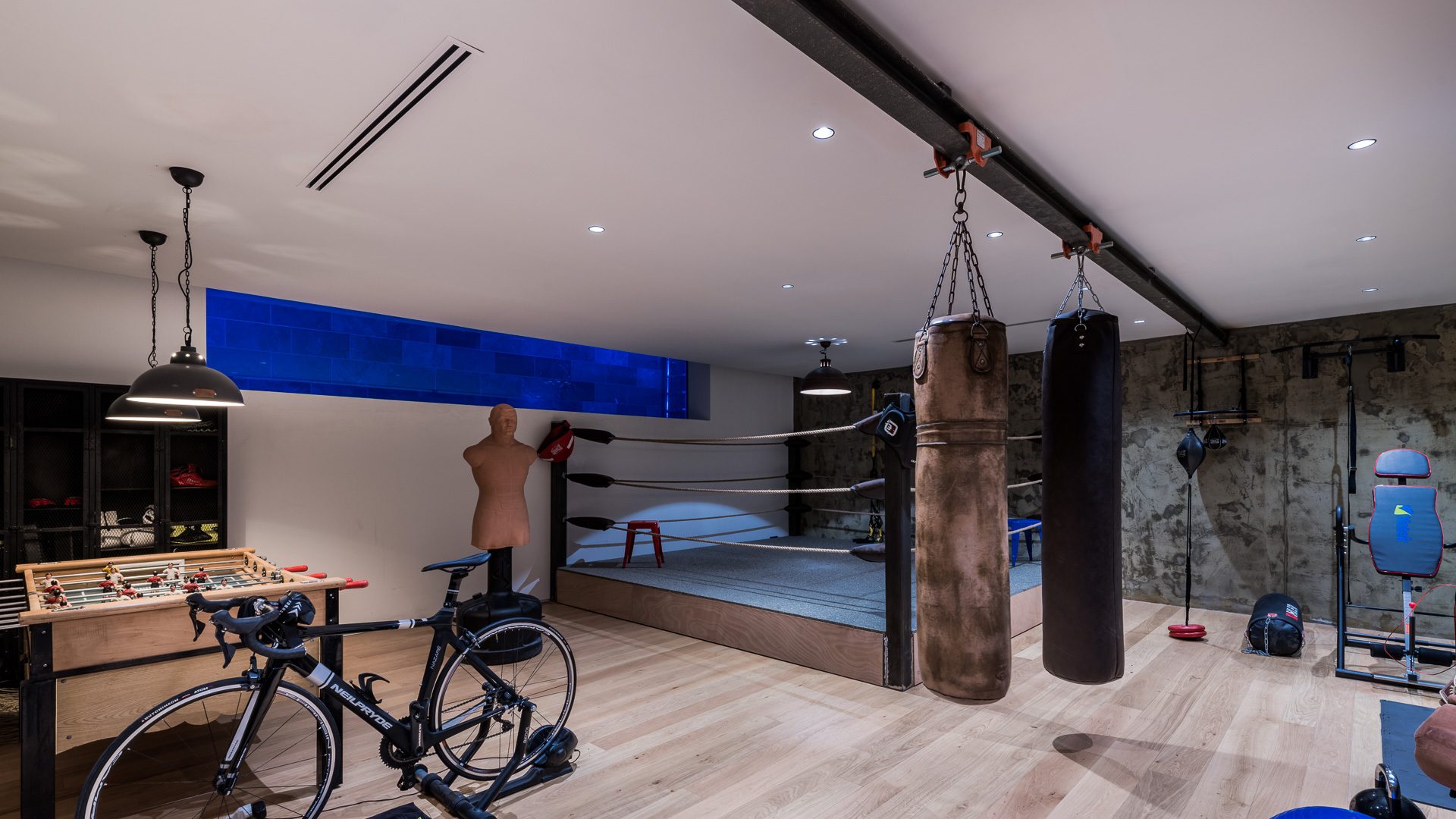 The property features a state-of-the-art design with open-plan living, a gourmet kitchen, and generous terraces spanning 123 m². The lower level includes a gym, wine cellar, and service quarters.